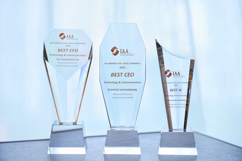 เอไอเอส ตอกย้ำผู้นำอุตสาหกรรมโทรคมนาคมไทย ด้วยความแข็งแกร่งครบทุกมิติ คว้า 3 รางวัลจากสมาคมนักวิเคราะห์การลงทุน ในงาน IAA Awards for Listed Companies 2025 ในหมวดอุตสาหกรรมเทคโนโลยีและสื่อสาร ต่อเนื่องเป็นปีที่ 5 ใน 3 หมวดรางวัลด้วยกัน ได้แก่ รางวัล CEO ยอดเยี่ยม สะท้อนการมีผู้นำแห่งวิสัยทัศน์ ที่พร้อมขับเคลื่อนนวัตกรรมและกลยุทธ์ในผลักดันสู่องค์กรโทรคมนาคมอัจฉริยะ ที่สร้างประสบการณ์ยอดเยี่ยมให้ลูกค้าและผู้ถือหุ้นอย่างยั่งยืน, รางวัล CFO ยอดเยี่ยม ผู้นำที่เต็มเปี่ยมด้วยศักยภาพในการบริหารงานและการจัดการด้านการเงินอย่างมีประสิทธิภาพ ทำให้แนวทางการพัฒนาองค์กรเป็นไปตามเป้าหมาย รางวัล IR ยอดเยี่ยม ทีมนักลงทุนสัมพันธ์มีกลยุทธ์การดำเนินงานด้วยเป้าหมายในการบริหารงานที่ใส่ใจผู้มีส่วนได้ส่วนเสียทุกภาคส่วนแบบเชิงรุก ช่วยให้นักลงทุนเห็นโอกาสจากหลายมุม